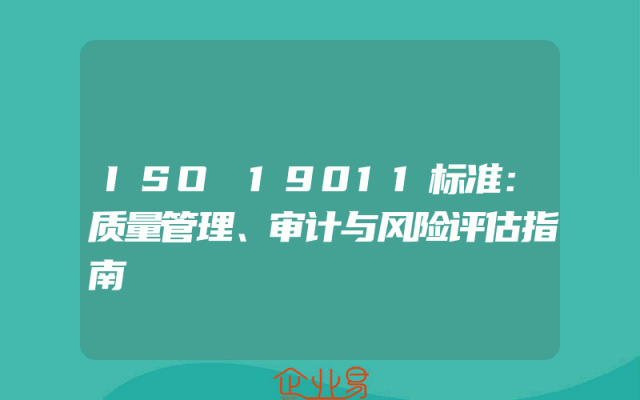 - ISO 19011标准:质量管理、审计与风险评估指南