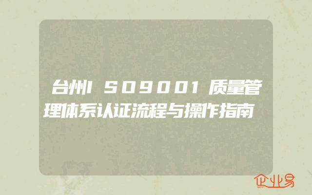 - 台州ISO9001质量管理体系认证流程与操作指南