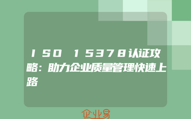 - ISO15378认证攻略:助力企业质量管理快速上路一、了解ISO15378标准在探索ISO15378认证之路前,首先要对ISO15378标准有一个全面的了解。ISO15378是关于质量管理领域的国际标准,它为企业提供了一套全面的质量管理方法