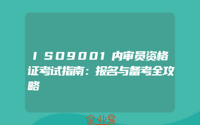 - ISO9001内审员资格证考试指南:报名与备考全攻略一、了解ISO9001内审员资格证ISO9001内审员资格证是企业在实施质量管理体系过程中,对员工进行内部审核能力的一种认证。持有该证书的人员,具备对企业质量管理体系进行自查、诊断和改进的