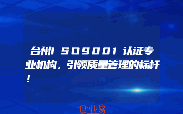 - 台州ISO9001认证专业机构,引领质量管理的标杆!