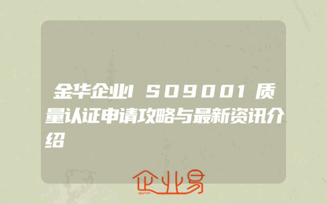 - 金华企业ISO9001质量认证申请攻略与最新资讯介绍
