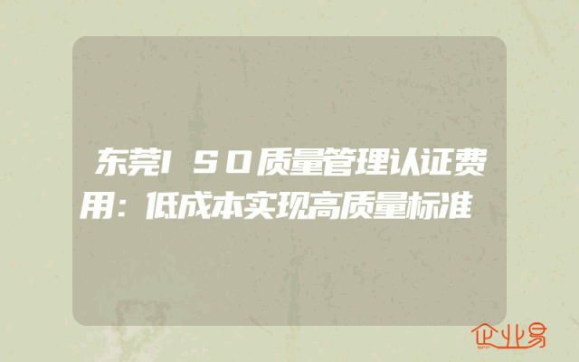 - 东莞ISO质量管理认证费用:低成本实现高质量标准