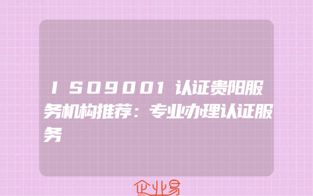- ISO9001认证贵阳服务机构推荐:专业办理认证服务