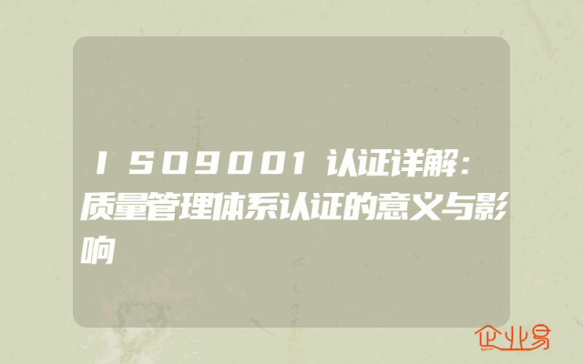 - ISO9001环境体系认证详解:意义、作用及办理流程