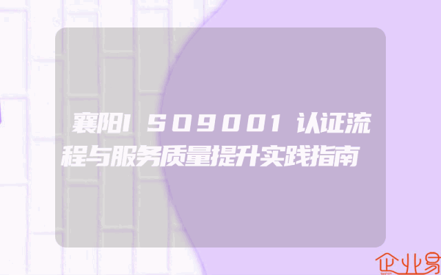 - 襄阳ISO9001认证流程与服务质量提升实践指南