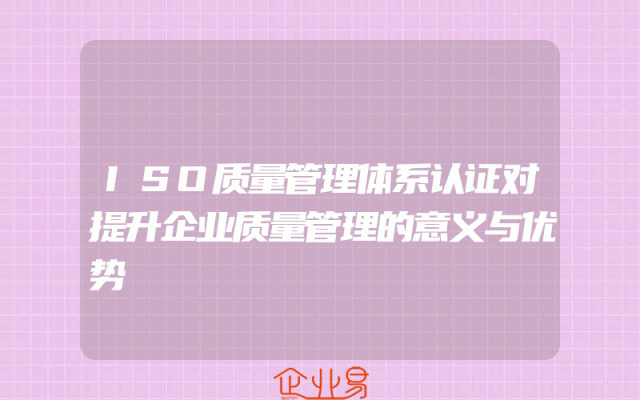 - ISO质量管理体系认证对提升企业质量管理的意义与优势