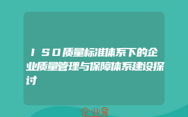 - ISO质量标准体系下的企业质量管理与保障体系建设探讨