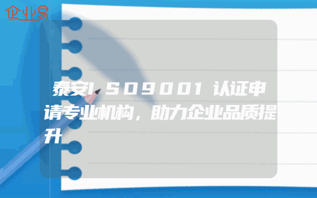 - 泰安ISO9001认证申请专业机构,助力企业品质提升