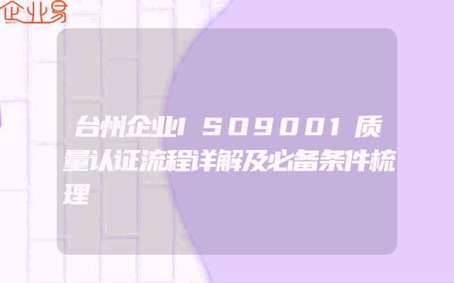 - 台州企业ISO9001质量认证流程详解及必备条件梳理