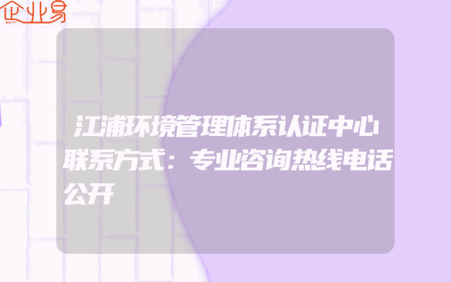 - 江浦环境管理体系认证中心联系方式:专业咨询热线电话公开