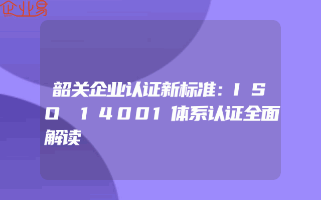 - 韶关企业认证新标准:ISO 14001体系认证全面解读