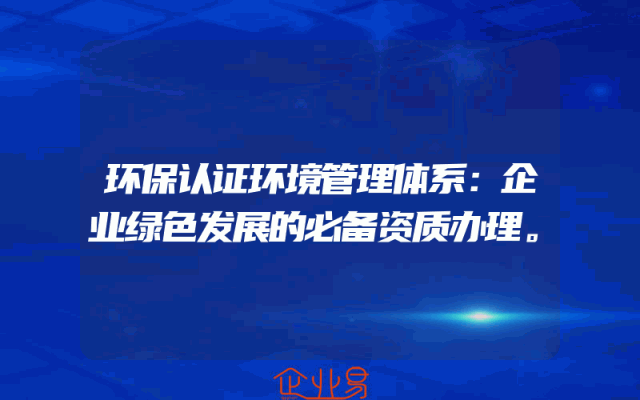 - 环保认证环境管理体系:企业绿色发展的必备资质办理。