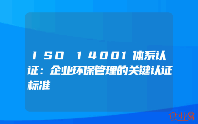 - ISO 14001体系认证:企业环保管理的关键认证标准