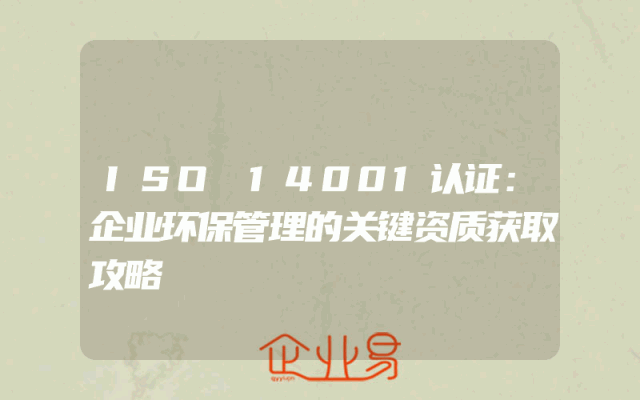 - ISO14001认证:企业环保管理的关键资质获取攻略在现代社会,随着环境保护日益受到重视,企业环保管理成为企业持续发展的关键因素之一。ISO14001认证作为企业环保管理的关键资质,已成为企业展