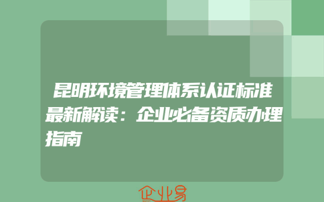 - 昆明环境管理体系认证标准最新解读:企业必备资质办理指南
