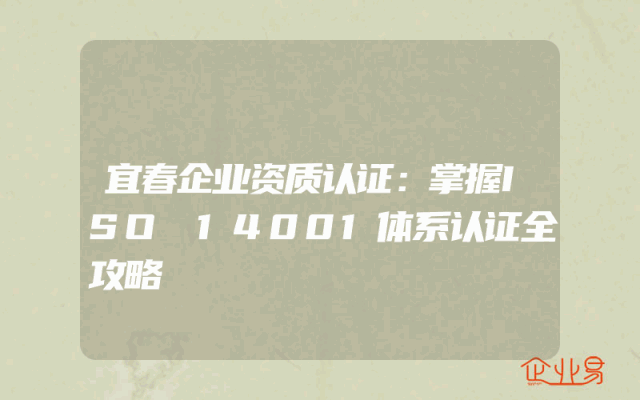 - 宜春企业资质认证:掌握ISO 14001体系认证全攻略