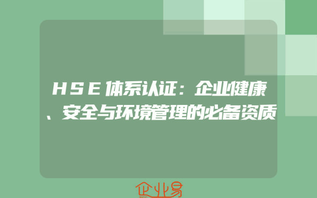 - HSE体系认证:企业健康、安全与环境管理的必备资质