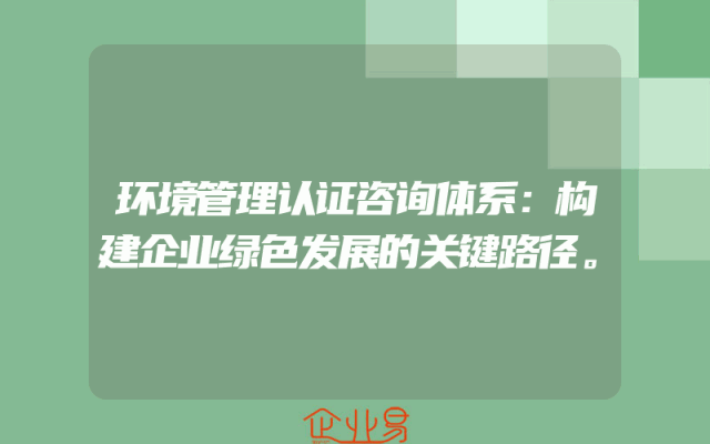 - 环境管理认证咨询体系:构建企业绿色发展的关键路径。