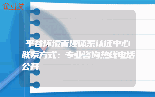 - 平谷环境管理体系认证中心联系方式:专业咨询热线电话公开