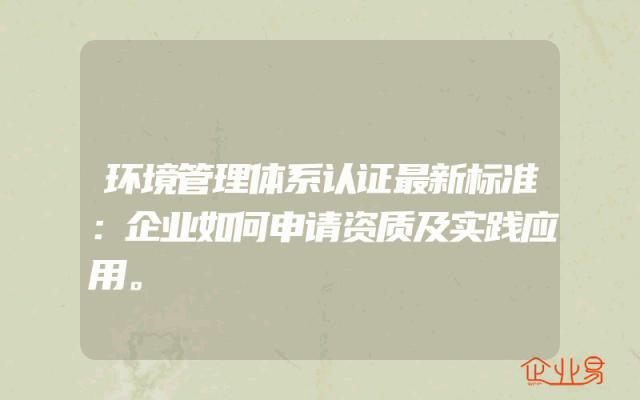 - 环境管理体系认证最新标准:企业如何申请资质及实践应用。