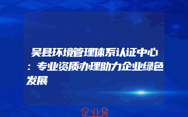 - 吴县环境管理体系认证中心:专业资质办理助力企业绿色发展