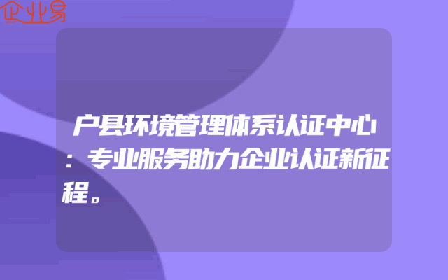 - 户县环境管理体系认证中心:专业服务助力企业认证新征程。