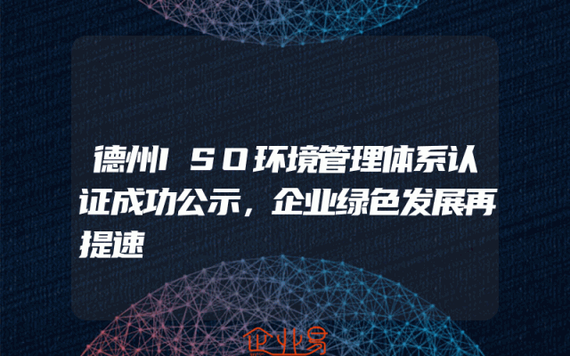- 德州ISO环境管理体系认证成功公示,企业绿色发展再提速