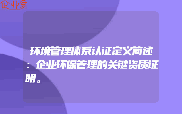 - 环境管理体系认证定义简述:企业环保管理的关键资质证明。