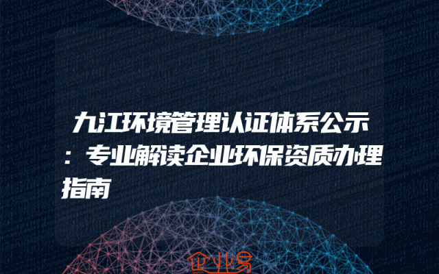 - 九江环境管理认证体系公示:专业解读企业环保资质办理指南