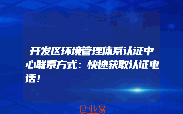 - 开发区环境管理体系认证中心联系方式:快速获取认证电话!