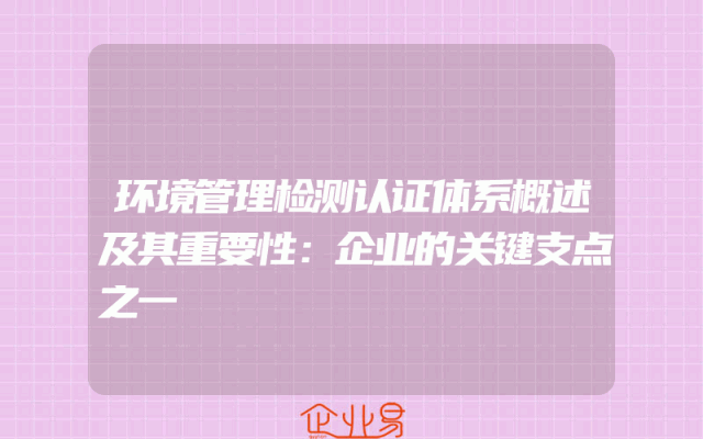 - 环境管理检测认证体系概述及其重要性:企业的关键支点之一