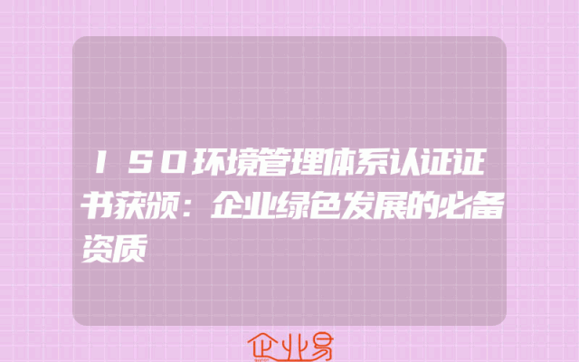 - ISO环境管理体系认证证书获颁:企业绿色发展的必备资质
