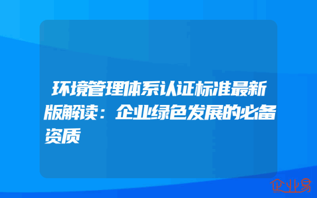 - 环境管理体系认证最新标准解读:企业如何高效获取资质证书