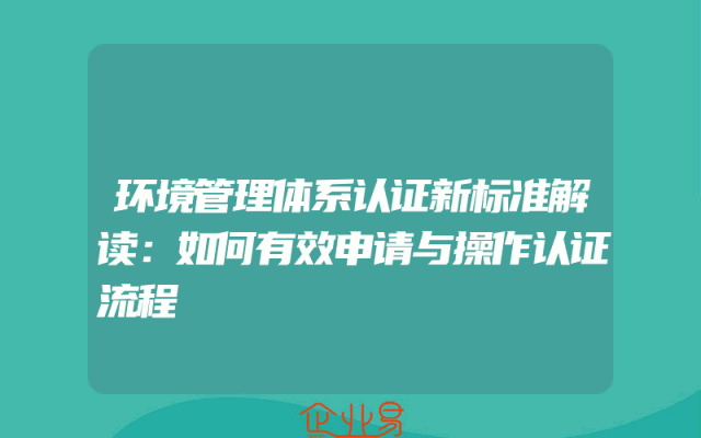 - 环境管理体系认证新标准解读:如何有效申请与操作认证流程