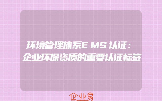 - 环境管理体系EMS认证:企业环保资质的重要认证标签
