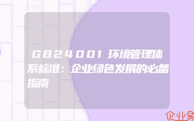 - GB24001环境管理体系标准:企业绿色发展的必备指南
