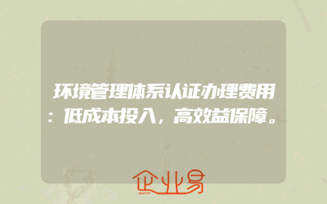 - 环境管理体系认证办理费用:低成本投入,高效益保障。