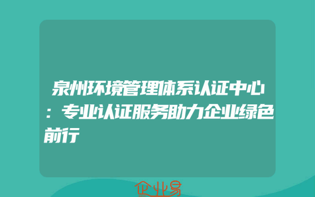 - 泉州环境管理体系认证中心:专业认证服务助力企业绿色前行