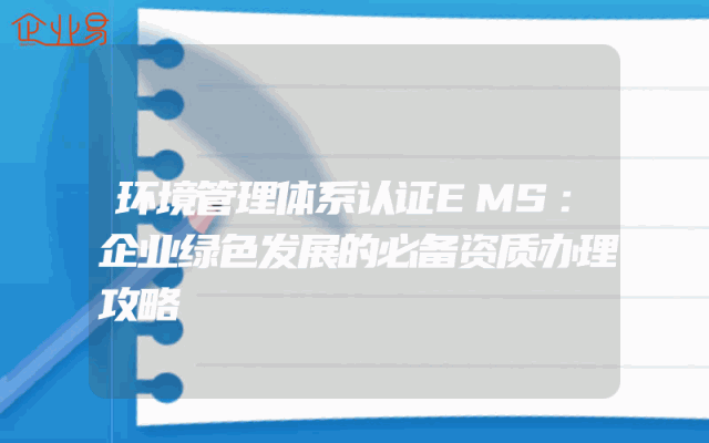 - 环境管理体系认证EMS:企业绿色发展的必备资质办理攻略