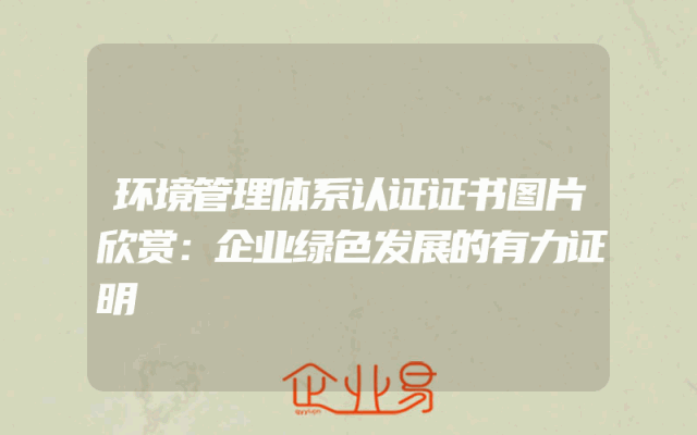 - 环境管理体系认证证书图片欣赏:企业绿色发展的有力证明