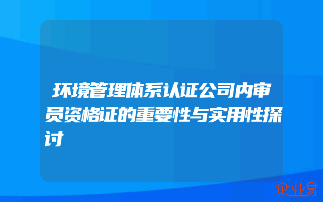 - 环境管理体系认证公司内审员资格证的重要性与实用性探讨
