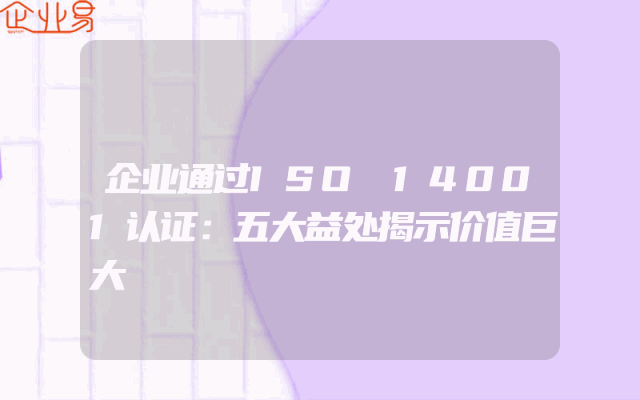 - 企业通过ISO 14001认证:五大益处揭示价值巨大