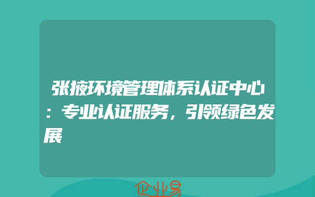 - 张掖环境管理体系认证中心:专业认证服务,引领绿色发展