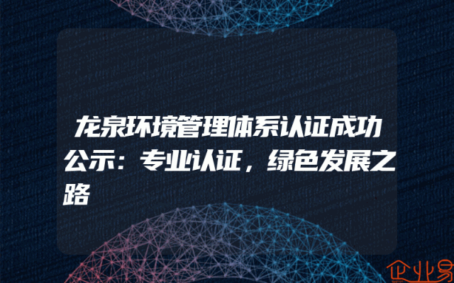 - 龙泉环境管理体系认证成功公示:专业认证,绿色发展之路