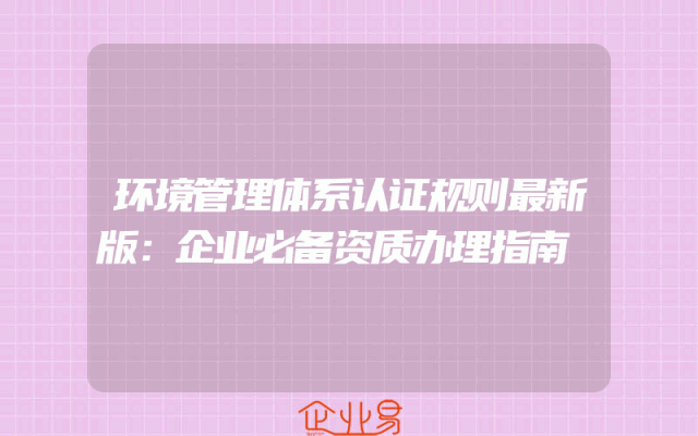 - 环境管理体系认证规则最新版:企业必备资质办理指南