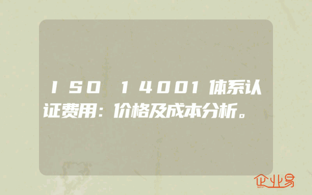- ISO14001体系认证费用详解:价格及成本分析一、ISO14001体系认证概述ISO14001是环境管理体系的国际标准,越来越多的企业开始重视并申请这一认证。环境管理体系的建立和认证涉及一系列的费用,这些费用包括咨询费、培训费、体系建立费