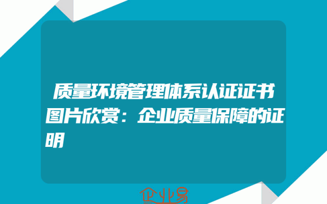 - 质量环境管理体系认证证书图片欣赏:企业质量保障的证明