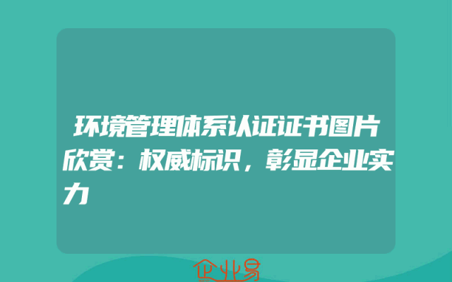 - 环境管理体系认证证书图片欣赏:权威标识,彰显企业实力