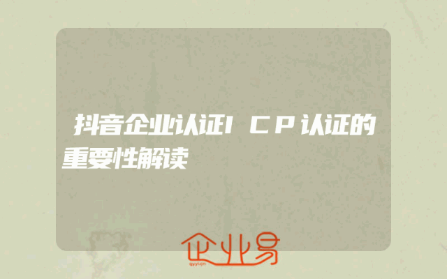 - 抖音企业认证是否需要进行ICP认证?一、抖音企业认证简介抖音作为一款热门的短视频社交平台,吸引了众多企业的目光。企业认证是抖音平台为企业提供的一项权威认证服务,通过认证,企业可以建立起良好的品牌形象,提升用户信任度,进而增加品牌曝光和用户互